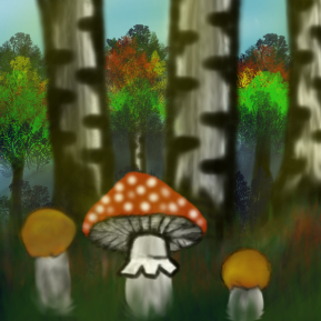 В этом уроке вы узнаете, как обычными кистями создать осеннюю картину и нарисовать грибы, а так же научитесь работать с эллиптическим выделением.